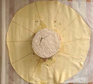 Rabattre la pâte feuilleté sur le dessus du camembert pour refermer votre camembert.